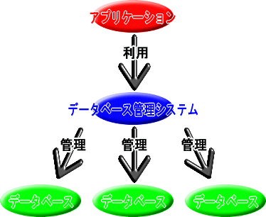上の図は、データベースとデータベース管理システムの関係を表したものです。ここでいうアプリケーションとは、これからつくる住所録のようなデータベースを利用したソフトのことです。データベースはデータベース管理システムに管理されていて、Delphiでのデータベース操作は多くの場合Borland Database Engineを介して行われます。Borland Database Engineとはデータベース管理システムの一部だと考えてよいでしょう。