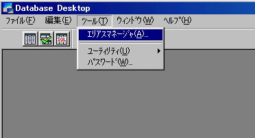 データベースデスクトップを起動したら、[ツール|エリアスマネージャ]を選択して、エリアスマネージャを呼び出します。