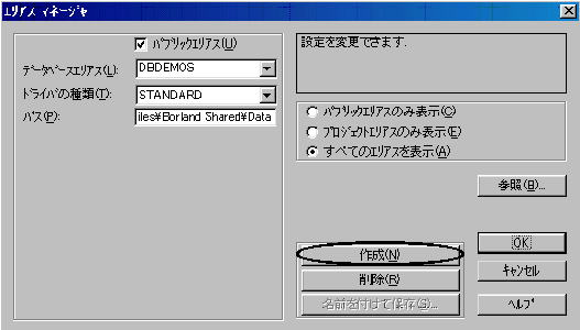 エリアスマネージャを呼び出したら[作成]ボタンをクリック