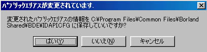 上のようなメッセージが表示されます。新しくエリアスを作成したので保存するため[はい]ボタンをクリック