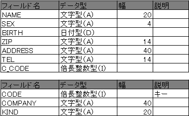 次にテーブルを作成します。今回は以下の2つのテーブルを用意します。