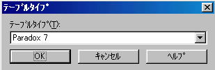 「テーブルタイプ」ダイアログボックスが表示されるので、’Paradox 7’を選択して[OK]ボタンをクリック