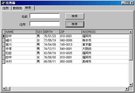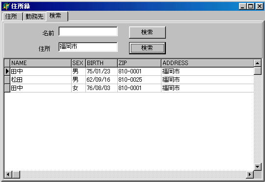 入力ボックスに「福岡市」と入力すると、住所が「福岡市」の人が選択されるようなプログラムを作成してください。