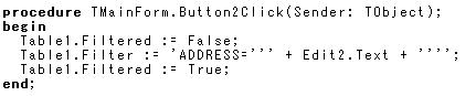 新しく配置した「検索」ボタンをクリックしたときの、OnClickイベントハンドラを以下のようにすれば完成です。