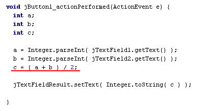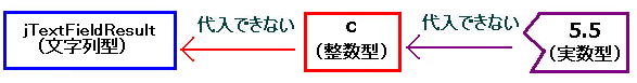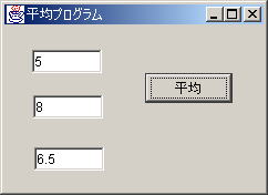 | 平均cを求めるところで、なぜ分母を「2」ではなく、「2.0」に変更したのか、不思議に思うかもしれません。 実は「c = ( a + b ) / 2」のままでは、例え、変数cを実数型にしても小数点以下は表示されないのです。 というのは、Javaでは「整数/整数」の演算結果は整数にする、という規則があるからです。 今の場合、a、bおよび2がすべて整数であるため、このような問題が起こります。この問題を避けるために、 分母か分子の(少なくとも)どちらか一方を実数にする必要があります。そこで、分母の整数「2」を実数「2.0」に変更したのです。 |