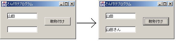 あとは「敬称付け」ボタンのイベントハンドラを書くだけです。下線部には何が入ると思いますか?