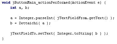まず、jButtonMain をクリックしたときの処理を、次のように書いてください。