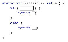 0の絶対値は、 。 a の絶対値は、 a が正の数のとき、 。 a が負の数のとき、 。 上の空欄を埋めて、関数 Zettaichiを完成させてください。 動作を確認してみましょう。 |