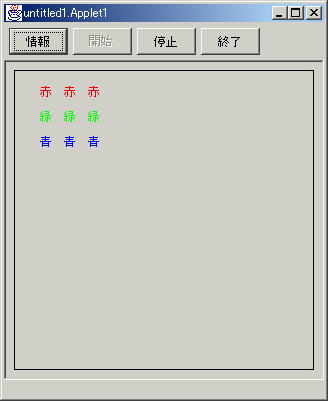 | 今節は、文字を表示するアプレットです。 まずは実行結果を見てください。