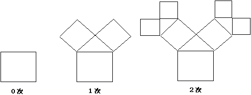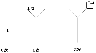 A 1次の樹木曲線は長さL/2の枝を90oの角をなして2本だす。