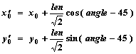 y2 := ys + round( len * sin(th) ); // →sin,cosの使い方は8章で・・・